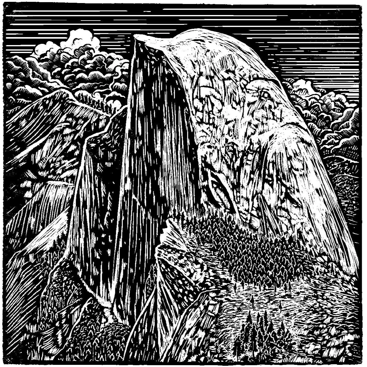 Yosemite's Half Dome, a majestic granite formation, stood as a testament to the raw beauty found in our national parks. Through linocut illustration, I endeavoured to immortalise the grandeur of Yosemite's landscape, creating a visual tribute to this iconic landmark.